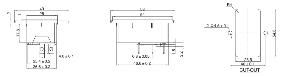 治具插座S-03系列,單插、二合一、三合一保險插座等多種規(guī)格,大電流10A ,15A,產(chǎn)品通過UL VDE CCC CB等認證,常見于家用電器,音響功放機等