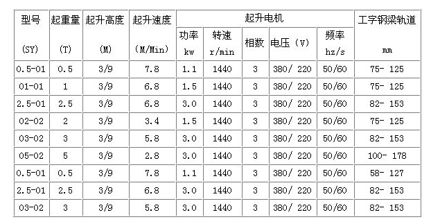 本產(chǎn)品SY型環(huán)鏈電動葫蘆起升高度?起升重量?請點擊>>技術參數(shù)
