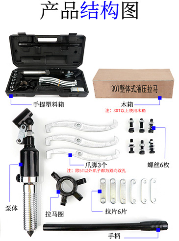 整體成型加粗泵體,不漏油,不斷裂,升級回油開關,快速回油,省心省力。抓的勞不勞,全靠它們→六角螺紋拉馬圈,螺紋越深爪得越緊,加粗加長,合金鋼爪,合金材質,抓鉤抓的勞。真正省力的拔軸承,手柄插入泵體頂部,上下?lián)u動,省時省力。5cm加長推送桿,幫您解決壓一次伸一點的問題。調節(jié)自由,適用范圍廣,強力頂針,調節(jié)自由,輕松拆卸。操換靈活,不受場地限制。提著去哪都行,便攜手提塑料箱。