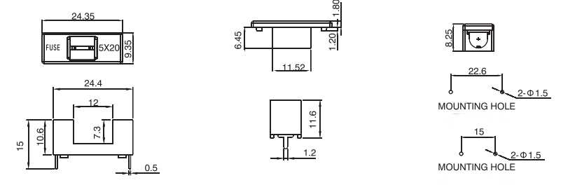 保險絲座FH系列,保險管座常見于PCB固定和螺母固定兩種方式,電流10-30A不等,配置的保險管5*20mm和6*30mm,擁有UL CE CQC認證,廣泛用于汽車行業(yè),家電等