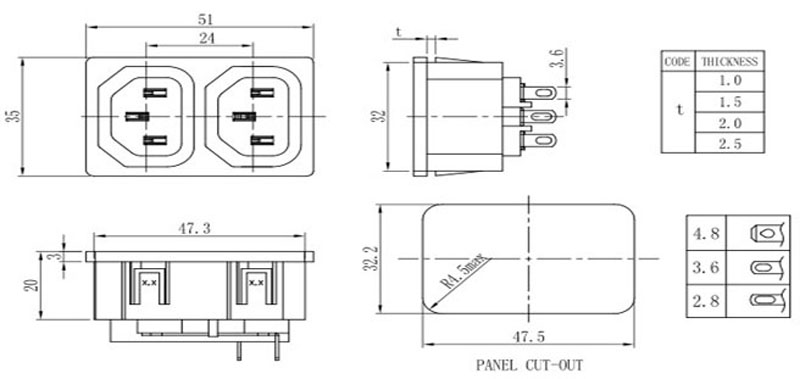AC電源插座系列,單插、二合一、三合一保險(xiǎn)插座等多種規(guī)格,大電流10A ,15A,產(chǎn)品通過(guò)UL VDE CCC CB等認(rèn)證,常見于家用電器,音響功放機(jī)等