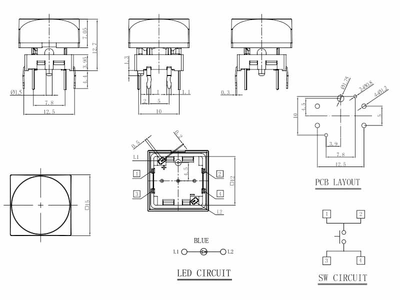 帶燈輕觸開關(guān)TS15-2TW-G-S